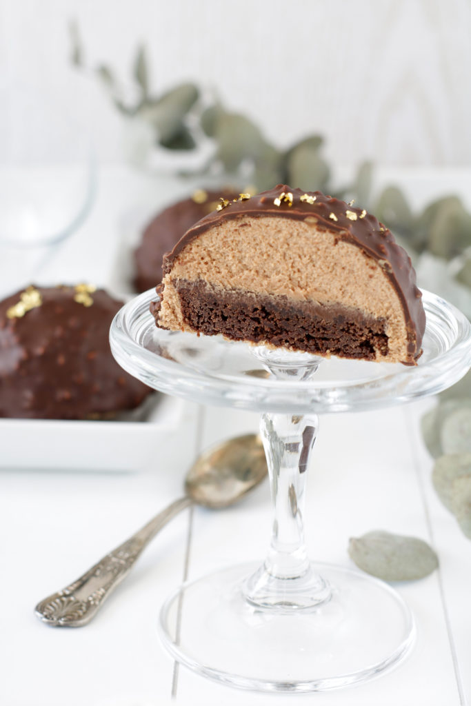 Togliere le semisfere dallo stampo in silicone e, con l’aiuto di una forchetta (infilzata nel brownie), intingerle nel cioccolato con le nocciole e farle asciugare su una gratella per 1 oretta.