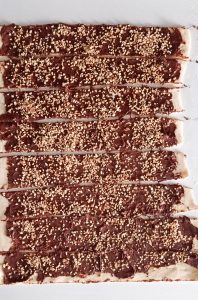 Spalma l’intera superficie con la Nocciolata e cospargi con la granella di nocciola.